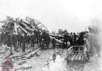 This picture shows the damage caused by the Bute Colliery boiler explosion of 1883
